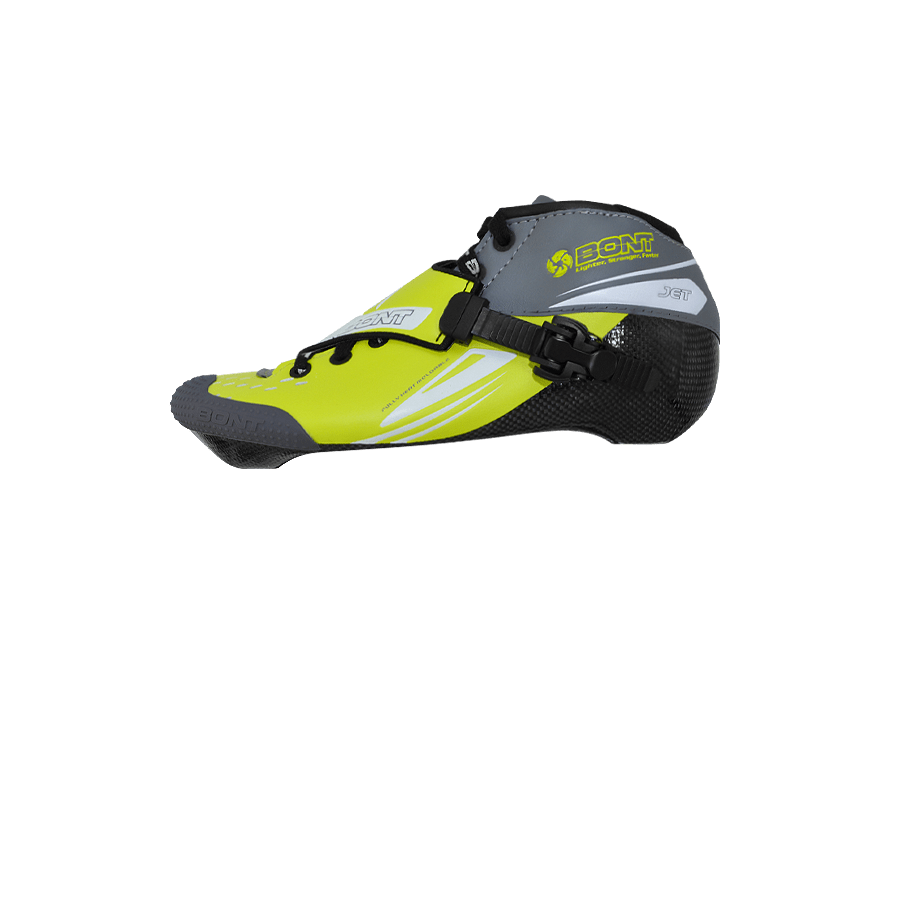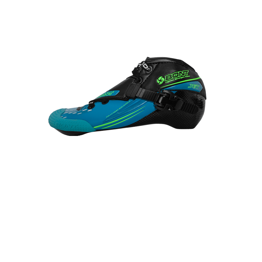 The Jet follows a long linage of Bont inline speed skates. This skate evolved from the Bont Sharkie and has sold over 1.4 million pairs since it was first launched in 1980. The boot has had a lot of upgrades since then as it has had to adapt to higher speeds and larger wheels. The Jet inline speed skate is now around 40% stronger than when it was first made thanks in part to the use of carbon fiber. Even though the manufacturing process of making a one-piece-boot is longer and more expensive than that of a two piece boot, we still make it the same way it has been made since 1980.